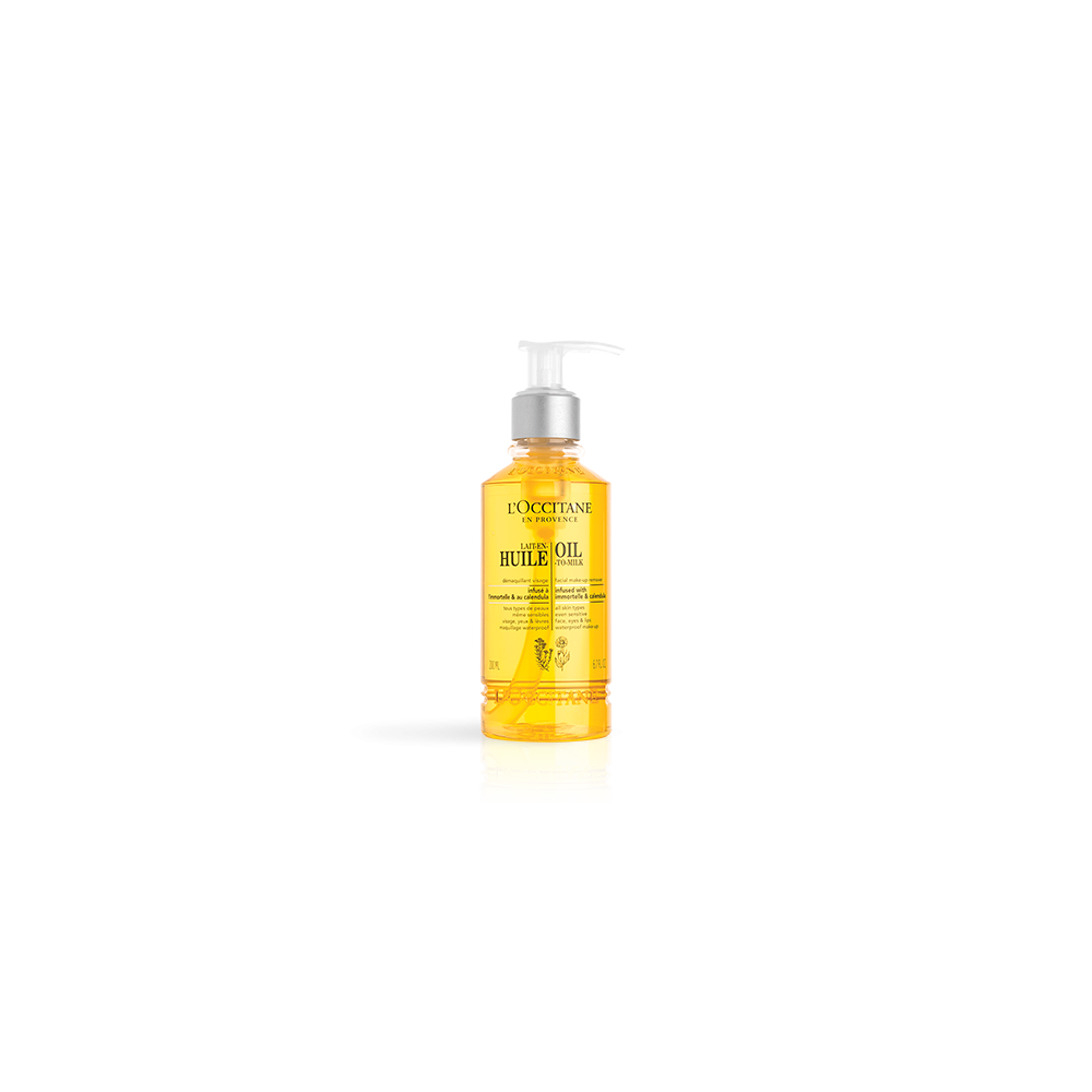 Infusé en fleur de calendula et immortelle, ce lait-en-huile démaquille votre peau efficacement et la rend éclatante de vitalité.