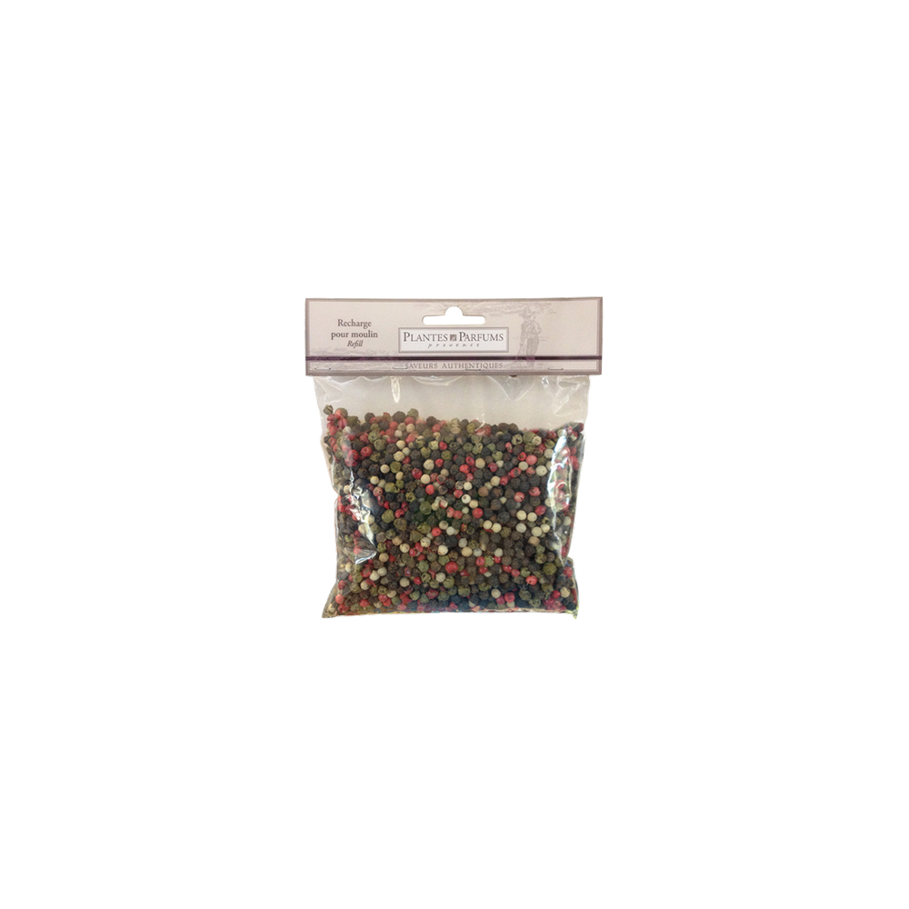 Mélange équilibré de 4 poivres: noir, blanc, vert et rouge.